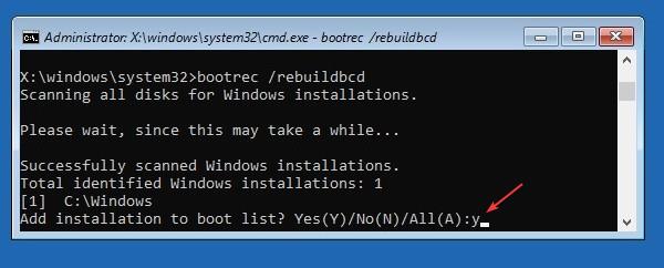 - bootrec /rebuildbcd